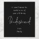 Eine lustige Art, diese ganz besondere Frage in klassisch schwarz-weiß fragen. Bridesmaid ist in einem eleganten weißen Drehbuch in der Mitte und die Erholung des Textes können Sie leicht personalisieren. Der schwarze Hintergrund kann in verschiedene Farben geändert werden, wenn Sie über die Option Weitere anpassen möchten.