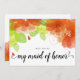 "Werden Sie meine Trauzeugin" orange Blume Blumenkarte Hochzeit im Herbst. Dieses wunderschöne Design zeigt orangefarbene Blume mit grünen Blätter und kursiver Schrift-Kalligraphie .