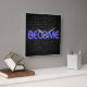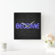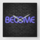 Beleuchtete urbane Ziegelwand mit BECOME Text in leuchtenden lila Neonleuchten.