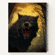Ein Werwolf schnarcht, wenn er hinter einem Felsausschnitt auftaucht. Hinter ihm steht ein bernsteinfarbener Himmel und ein Wald aus unbefleckten Bäumen. Es ist das perfekte Geschenk für Werwolf-Liebhaber und Halloween-Fanatiker.