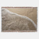 Eine Throw-Decke mit dem Bild einer Welle, die zum Strand abspült, als von einem hohen Aussichtspunkt aus betrachtet.