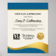 Universelles Exzellenzzertifikat oder Wertschätzung mit modernem Wavy Design in Blau und Gold Farbschema, Imitate Gold Siegel oder Emblem; fügen Sie einfach Ihren Text, Logo, und laden Sie eine Signatur oder löschen und schreiben Sie später.