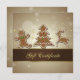Elegante und köstliche Weihnachtsbilder: dekorierter Lebkuchenweizenbaum, Lebkuchenmann und Lebkuchenhirsch mit goldenen Sternen auf braunem Bukett.