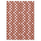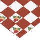 Reife rote Tomaten, belaubter grüner Basilikum, eine große Birne des Knoblauchs und eine traditionelle Flasche von Chianti sind alle im Italienisch-inspirierten Stillleben auf dieser roten und weißen Schachbretmustertischdecke eingeschlossen.