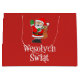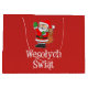 Wesolych Swiat rot, große Geschenktasche mit einem Cartoon Santa. Sag "Frohe Weihnachten" auf Polnisch mit dieser großen Geschenktasche. Ideal für dieses besondere, Urlaubsgeschenk.