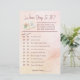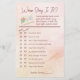 Dieses lustige Brautparty-Spiel wird testen, wie gut Ihre Gäste die Braut und Bräutigam kennen. Die Gäste müssen erraten, ob jeder Gegenstand Teil der Geschichte der Braut, des Bräutigams oder beides ist. Das Spiel ist vollständig anpassbar, sodass Sie Ihre eigenen Gegenstände eingeben oder die von uns bereitgestellten verwenden können. Die rosa- und pfirsichfarbene Zeichnung enthält eine niedliche Aquarellfarbe eines Verlobung-Ringes, die in einem offenen Buch ausgeglichen ist und einen herzförmigen Schatten bildet, der in der Nähe von einer rosa Rose auftaucht. Ideal für ein buchthematiges Brautparty!