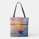 In der Tasche befinden sich zwei wunderschöne Gemälde von Sarah Orre. Auf einer Seite befindet sich das Acrylgemälde "West Cliff Dog Beach" aus dem Santa Cruz Gebirge. Auf der anderen Seite gibt es "Sailing into Sunset".