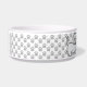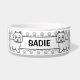 Desteis originelle Cartoon-Illustration eines niedlichen Weimaraner Zuchthundes. Es gibt auch einen personalisierbaren Textbereich für einen Namen. Der Hintergrund weist ein Muster grauer Hundepfoten auf.