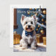 Versenden Sie Weihnachtsgrüße mit diesen West Highland White Terrier Weihnachtskarten, die einen liebenswerten West Highland White Terrier tragen, der in einer Bogen-Krawatte neben Weihnachtsgeschenken sitzt und im Hintergrund einen dekorierten Weihnachtsbaum trägt. Die Weihnachtskarte des West Highland White Terrier wurde im Hinterkopf von West Highland Liebhabern der White Terrier entwickelt und ist eine wunderbare Wahl für West Highland White Terrier Liebhaber.