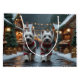 This festive design captures the joyful spirit of the holiday season, featuring an adorable dogs.Nestled in a winter wonderland, complete with a decorated Christmas tree, and beautifully wrapped presents. Snowflakes gently fall, adding a magical touch to the scene, while the vibrant colors of the holiday decorations create a warm and cheerful atmosphere.