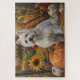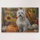 Feiern Sie die Schönheit des Herbstes mit diesem lebendigen Gemälde eines Hundes, der neben einer reichen Erntedank-Ernte sitzt. Die reichen Herbstfarben von Kürbissen, Sonnenblumen und die rustikale Landschaft der Bauernhäuser schaffen eine warme und einladende Atmosphäre, die sich perfekt für jeden Hundefreund im saisonalen Dekor eignet.
