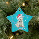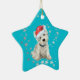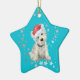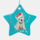 Ein bezaubernder West Highland White Terrier sitzt inmitten eines Silbersternwirbels an der Vorderseite dieses Holiday-Ornaments. Das Bild wird auf einem hellen aquamarinen Hintergrund platziert. Die Rückseite des Ornaments hat den gleichen silbernen Stern und aquamarinen Hintergrund, mit zwei benutzerdefinierten Textfeldern in dunkelgrau aquamarin. Perfekt für alle, die ihr Herz an einen Westie verloren haben!