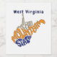 Der Staat von West Virginias Spitzname: Der Staat der Berge, der in einer Silhouette in Form eines Staat ausgestellt ist, zeichnet sich durch ein buntes typografisches Design mit Retro-Ambiente aus