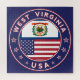 Abzeichen von West Virginia mit der Flagge von West Virginia und Fahne von USA-Farben, gerundete Form. Emblem von West Virginia,