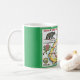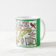 Eine Vintage Postkartenlandkarte von West Virginia, die auf einer Tasse neu angelegt wurde. Es ist farbenfroh und macht Spaß.