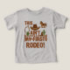 Dieser Western-Kinderzauber-T - Shirt enthält den Text "This ain't my first rodeo" mit einem winzigen Hut, Stiefeln und Lasso, sowie lustige rustikale Details wie Kakteen, Pferde und Holzzaun. Ideal zum zweiten Geburtstag.