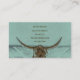 Dieses rustikale Western Visitenkartenvorlage verfügt über einen Kuhkuhschädel aquamarinen braunen Country Grunge Textur Scheune Design. Vintager Stil alten wilden Westen inspiriert antikes Bauerntier. Bildrecht Marg Seregelyi Fotografie.