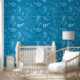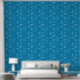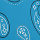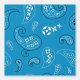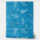 Diese schale und klebige Tapete hat das Aussehen einer klassischen Bandana aus Western mit Paisley-Formen in Schwarz-Weiß-Set vor einem mittelblauen Hintergrund.