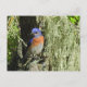 Western Bluebird, Wildtiere, Postkarte. Eine gute Art, dem Vogelbeobachter in deinem Leben eine Nachricht zu senden. Western Bluebird auf einem Ast in einem waldreichen Gebiet des San Luis Obispo Landkreis, Kalifornien.