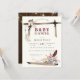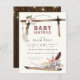 Boho Bogen mit Federn, Kristallen, Pfeilen und Blume umrahmen eine reizvolle Babydusche. Umkehrt zu rustikalem lackiertem Holz und Streichelleuchten. Cowboyvibes sind für jede Zeit und jedes Geschlecht perfekt. Ihre Gäste werden sich auf eine lustige und einzigartige Veranstaltung freuen. Ein bisschen launenhaft, ein bisschen Western und ein wenig rustikal. Die Farben sind tiefbraun, die Rose rosa und die Creme dunkelrot.