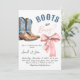 Elegant What will Baby Be Boots or Bows Themed Gender Reveal Invitation featured watercolor pink bow and blue cowboy boots. Matching products you can find in the collection.