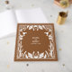 Ein modernes Cowboy-Cowgirl-Design mit handgezeichneten Elementen eines Kuhschädels, Hufeisen, Blumen- und Kaktusschmuck. Braun-weiße Blütengrenzenhochzeit mit handgezapften Blumen, Kakteen, Kuhschädel und Hufeisen. Dieses zeitgenössische, moderne Western Country Hochzeitsdesign ist ideal für alle Jahreszeiten. Eine elegante, braune und weiße Ranch, Bauernhof oder Scheunendesign mit handgezeichneten Illustrationen. Ein Western Country Cowboy Thema Gastgeschenk Hochzeit Tasche Design mit modernen eleganten Elementen. Auch die passenden Hochzeitseinladungen und andere Schreibwaren sind verfügbar.