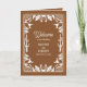 Ein modernes Cowboy-Cowgirl-Design mit handgezeichneten Elementen eines Kuhschädels, Hufeisen, Blumen- und Kaktusschmuck. Braun-weiße Blütengrenzenhochzeit mit handgezapften Blumen, Kakteen, Kuhschädel und Hufeisen. Dieses zeitgenössische, moderne Western Country Hochzeitsdesign ist ideal für alle Jahreszeiten. Eine elegante, braune und weiße Ranch, Bauernhof oder Scheunendesign mit handgezeichneten Illustrationen. Ein Western Country Cowboy themed Hochzeitsorder Service-Card-Design mit modernen eleganten Elementen. Auch die passenden Hochzeitseinladungen und andere Schreibwaren sind verfügbar.