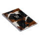 Ein rustikales Notizbuch zum Thema Western mit einem schwarz, braun und weiß-farbigen Cowhidmuster, dieses Notizbuch hat einen Wild West Look! Eine Textvorlage wird zur Personalisierung mit dem Initial und Namen Ihres Monogramms eingebunden. Dieses Produkt ist eine wunderbare Wahl für Cowboys und Cowgirls überall! Das Cowhidmuster des Imitats ist ein Digitaldruck und kein Fell oder Versteck.