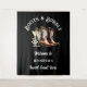 Ein geflochtenes Lederpaar von braunen Cowgirl Stiefeln mit einem verzierten Blumenmuster auf ihm hat ein Aquarell Chic Glas von Bläschen und Martini neben ihm Set über bearbeitbaren weißen Text Vorlagen kann personalisiert sein, um Ihre besondere Feier Anzug. Dieses stilvolle Wandhängewerk eignet sich auch für ein Western-Thema, Country "Stiefel und Blubbles" oder "Stiefel und Blubbly".