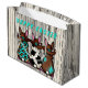 A Cute Western Large Gift Bag Designed With Easter Bunnies With Western Hats On A Worn Style Wooden Colored Bag