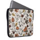 Der elegante Herbst-Laptop-Ärmel mit handgezeichnet Illustrationen in schwarzer Tinte, mit einer Western Fall Harvest-Szene mit Kuhschädel, Rose, Kürbissen, Herbstblättern, Ästen und Beeren, alles in einem eleganten Herbstfarbenschema. Elfenbeinhintergrund