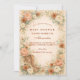 A romantic western baby shower design framed with soft blush and ivory florals, muted sage greenery, and warm terracotta blooms. Delicate pampas accents surround a refined arched layout, while classic cowgirl boots add a subtle rustic statement at the base. The neutral parchment background keeps the look elegant and timeless, blending country charm with modern boho style. Fully customizable for names and event details—perfect for a western, cowgirl, ranch, or desert-inspired celebration.