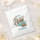 This favor bag features a western horse watercolor design with soft floral accents and classic cowgirl elements, including cowgirl boots and a cowgirl hat. The rich navy background paired with turquoise and neutral tones creates an elegant western look that’s perfect for a horse birthday party.