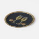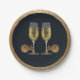 Western Party Teller mit Champagnergläser mit Sporen. Der Hintergrund ist schwarz mit einem goldenen IMITAT Glitzer Rand. Sehen Sie diese und ähnliche Designs auf anderen Party-Vorräten im Rodeo Days Store.