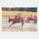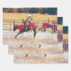 Western rustikale Rodeo Country Cowboy Reiten Handwerk decoupage Packpapier Blatt Set von drei. Altes Kunstdesign. Roter Traktor im Hintergrund. Bildrecht Marg Seregelyi Fotografie.