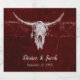 Rustikaler Western burgundy Bull Kuh Schädel Western Cowboy Rodeo Hochzeitsessen Empfang Schaumwein Flaschen Etiketten. Texture Bauernstil Design, um Ihren Tag zu einem besonderen. Vintage antike alte wilde Westen inspirierte Gunst Geschenke. Cooles Bauerndesign. Personalisieren Sie Ihr Skript. Bildrecht Marg Seregelyi Fotografie.