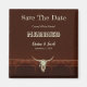 Country Western Cowboy Spaß Braun Holz Hochzeit sparen das Datum Kühlschrank Magnete. Rustikaler Stier Schädel einzigartige Einladungen. Der Hauch des Bauernhauses. Essen, trinken, weil wir Verheiratet werden können personalisiert sein. Alte wilde West antike Vintage inspirierte Gestaltung. Cooles, trendiges Bauerntier. Passen Sie Skripte und Typografie an. Bildrecht Marg Seregelyi Fotografie.