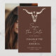 Western Save the Date - featuring a rustic bohemian western cow skull on an orange terracotta background. Save the Date is a simple design with script and modern lettering for a minimalistic design. All elements can be edited.