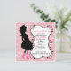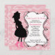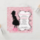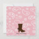 Yee-Haw!!! Es gibt ein Baby auf der Weise!! Fangen Sie Ihre Feier mit dieser entzückenden Babypartyeinladung an. Groß für das Cowgirl-/Westernthema. Es hat ein Rosa mit weißem Westerndruckhintergrund. Es gibt einen schwarzen wirbelnden Rahmen mit kleinen Sternen auf ihm. Innerhalb ist, wo Sie mit Ihren Partyinformationen personifizieren. Die links Seite hat eine entzückende Silhouette einer Profilansicht eines schwangeren Cowgirls. Sie trägt einen Hut, ein Kleid und rosa Cowboystiefel. Karo heraus die anderen Entwürfe und die Produkte, die wir anbieten. ©JW Illustrationen