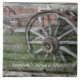 Rustikales Wagenrad im Stil eines Westerns, Keramik. Digitale Kunst. Relikt aus vergangener Zeit, wurde sie im alten Vergnügungspark Adirondack, Frontier Town, fotografiert. Vollständig anpassbar, machen Sie es zu Ihrem eigenen. Bearbeiten Sie den Text nach Ihren Wünschen oder entfernen Sie den Text ganz.