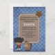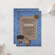 Western thematied Baby-Junge's erste Geburtstagsfeier Einladung in einem blauen auf blauem Not leidenden Gingham Karo Hintergrund getan. Ein Pappbrauner wie ein Textbereich hat die Grafik eines Sterns, Kindercowboy und Pferd. Personalisieren Sie den gesamten Text für den besonderen Tag Ihres kleinen Mannes.