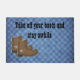Western-Thornmatte, mit grafisch blauem kariertem Hintergrund und einem Paar brauner Stiefel, in der unteren links Ecke. Nehmen Sie Ihre Stiefel und bleibe, während, in schwarz fett, kann personalisiert sein, zu lesen, was Sie gewollt.