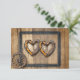 Rustikales Land Hochzeit Barnwood Hochzeit Antwort Karte mit einem Land Western Thema. Holzzweig, Herzform Rahmen für Ihre Namen und Waggon Rad mit silberem Pferdeschuh.