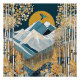 Wintery Western Colorado Mountains and Hummingbird - ein modernes, skurriles Hauswärmeschenk im Klimt-Stil für Naturliebhaber. Große Kunst im Jugendstil-Stil in Blau-Gold und Weiß.