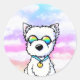 Westie Terrier Hundekunst mit einem KiniArt ™️ Cartoon Westie mit Spiegelsungliesen, die den Regenbogenwut eines Sonnenuntergangshimmels durch den zeitgenössischen PUP-Künstler Kim Niles widerspiegeln. © Kim Niles, KiniArt ™️ - Alle Rechte vorbehalten