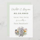 Hochzeit speichern Sie das Datum mit West Highland Terrier Hund Design. Wildblumen und Welpenbild am unteren Rand mit fünf Zeilen grünem Text für Garten anpassen. Das Gegenteil ist massiv blassgrün. Ideal für Paare, die planen, ihr Pelzkind in einer Frühjahr- oder Sommerhochzeit einzubeziehen. Download-Option, Papieraktualisierungen und Größenauswahl.