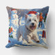 Westie läuft im Schnee mit Weihnachtshut Kissen