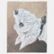 West Highland White Terrier, Westie nach oben, in Profil mit braunem Hintergrund. Benji. Copyright © 2025 Angi Laframboise. Alle Rechte vorbehalten. Hunde der schönen Kunst züchten Geschenke für Hundefreunde.