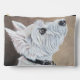 West Highland White Terrier, Westie nach oben, in Profil mit braunem Hintergrund. Benji. Copyright © 2025 Angi Laframboise. Alle Rechte vorbehalten. Hunde der schönen Kunst züchten Geschenke für Hundefreunde.