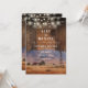 Diese rustikale westliche Barn Wood Hochzeitseinladung mit einer Western Ranch Bergszene und Lichterketten auf einem Barn Wood Hintergrund kann mit Ihren Informationen in stilvoller Typografie personalisiert werden. Mit allen Ihren besonderen Hochzeitstagsinformationen auf der Rückseite, einschließlich Ihrem Registrierungs-QR-Code. Entworfen von Thisisnotme